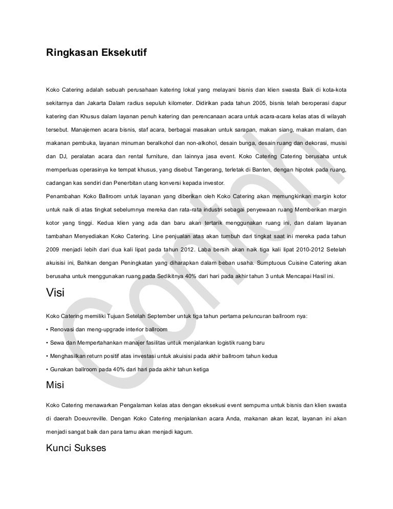 Contoh Ringkasan Eksekutif Bisnis Plan Makanan Executive Summary